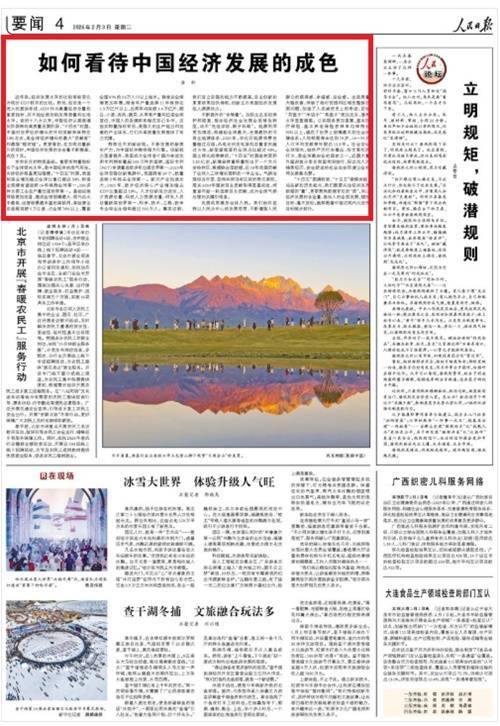 2月3日,《人民日报》第4版(要闻版)重要位置刊发《如何看待中国经济发展的成色》一文,作者署名为“金轩”。以下为文章全文:
